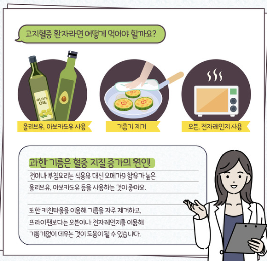 고지혈증 관리의 핵심은 식단입니다. 식습관만 바꿔도 콜레스테롤 수치를 10~20% 낮출 수 있습니다.